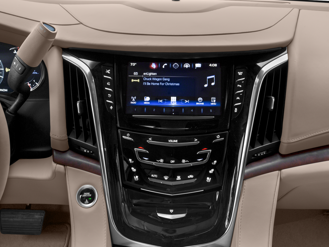 The vehicle's Lane Departure Warning keeps you safe by alerting you when you drift from your lane. See what's behind you with the back up camera on this model. This vehicle's Cross-Traffic Alert: Safeguarding you from unexpected traffic when reversing. Never get into a cold vehicle again with the remote start feature on this unit. This Cadillac Escalade features a hands-free Bluetooth® phone system. This 1/2 ton suv has auto-adjust speed for safe following. Our dealership has already run the CARFAX report and it is clean. A clean CARFAX is a great asset for resale value in the future. This 1/2 ton suv offers Apple CarPlay for seamless connectivity. The leather seats in the vehicle are a must for buyers looking for comfort, durability, and style. You'll never again be lost in a crowded city or a country region with the navigation system on this unit. Lane Keep Assist in this 1/2 ton suv helps maintain safe driving by gently steering to stay within the lane.