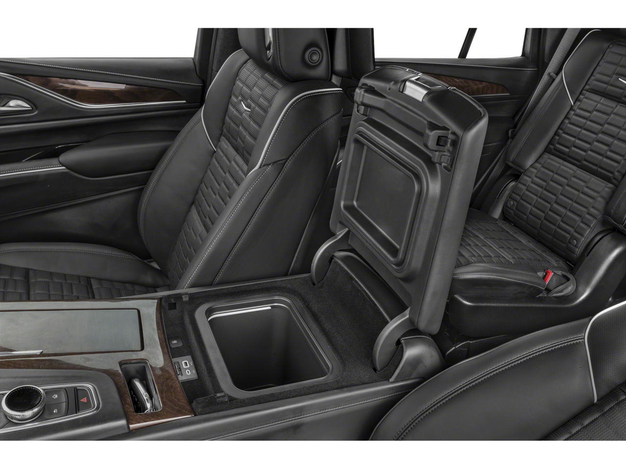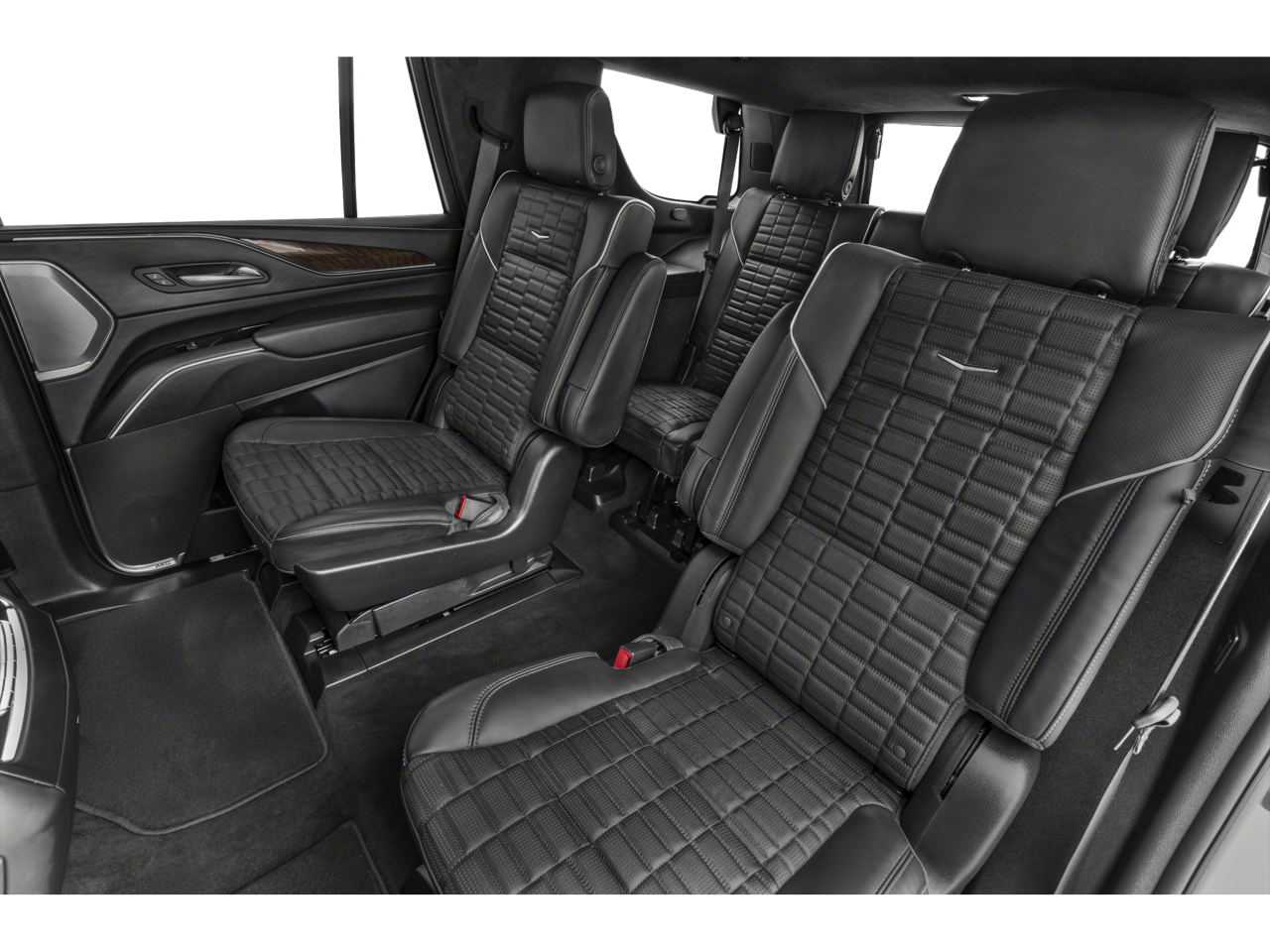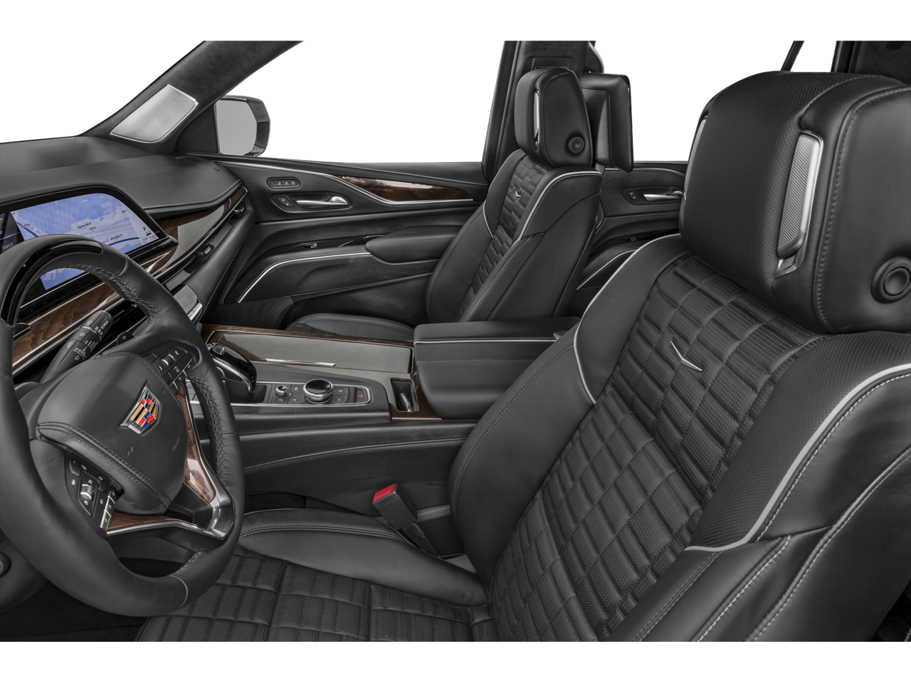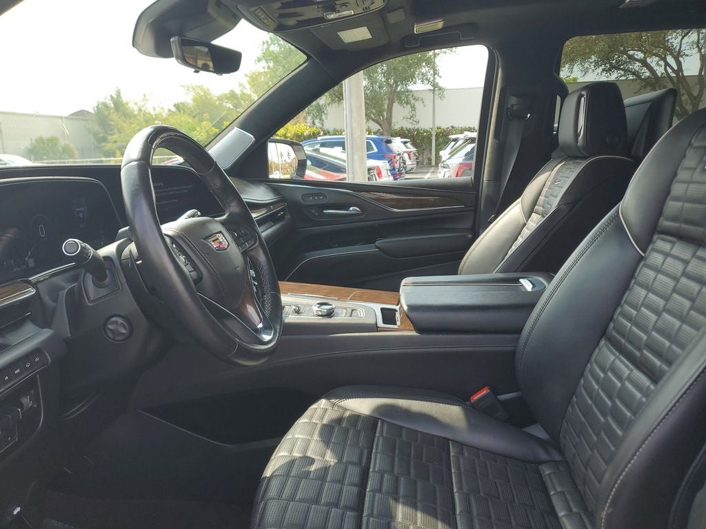 Preferred Equipment Group 1SH: Trailer Side Blind Zone Alert; Power Panoramic Tilt-Sliding Sunroof; Enhanced Automatic Parking Assist; Smart Trailer Integration Indicator; Floor Console with Covered Storage; Rear Camera Mirror Washer; Rear Camera Mirror; Theft-Deterrent Alarm System; Rear Seat Entertainment System; Vehicle Interior Movement Sensor; Platinum Interior Trim; Rear Cross Traffic Alert; Vehicle Inclination Sensor; Reverse Automatic Braking; Glass Breakage Sensor; Power Lumbar Massage Front Passenger Seat; Adaptive Cruise Control; Automatic Seat Belt Tightening; Body-Color Door Handles; Door Lock and Latch Shields; Electronic Limited-Slip Differential; AKG Studio Reference 36-Speaker Audio System; Integrated Trailer Brake Controller; Hitch Guidance with Hitch View; Single-Speed Active Transfer Case; Running Board Assist Steps; Touring Package; Power Lumbar Massage Driver Seat; Heated and Ventilated Driver and Front Passenger Seats; Reconfigurable Full-Color Head-Up Display; Magnetic Ride Control Suspension; Enhanced Automatic Emergency Braking. Onyx Package: Gloss Black Escalade Nameplate; Monochrome Cadillac Emblems; 22" 12-Spoke