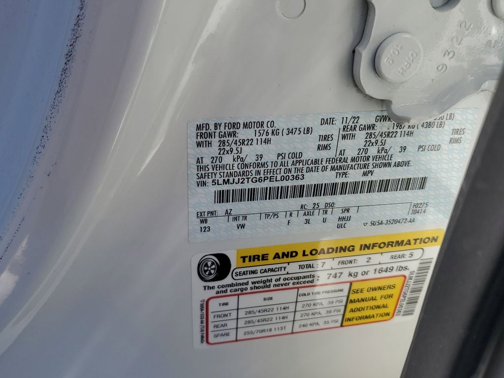 Equipment Group 800A Black Label: 22" 14-Spoke Bright Machined Aluminum Wheels; 3.73 Axle Ratio; 10-Speed Automatic Transmission with SelectShift; 3.5L Twin-Turbocharged V6 Engine; 285/45R22 AS BSW Tires; 7. 625 lbs GVWR; Revel Ultima 3D Audio System with 28 Speakers. Lincoln Play. Pristine White Met TC. 2nd Row Heated/ventilated Enhanced Massage Seats Without Console. **Equipment listed is based on original vehicle build and subject to change. Please confirm the accuracy of the included equipment by calling the dealer prior to purchase.**