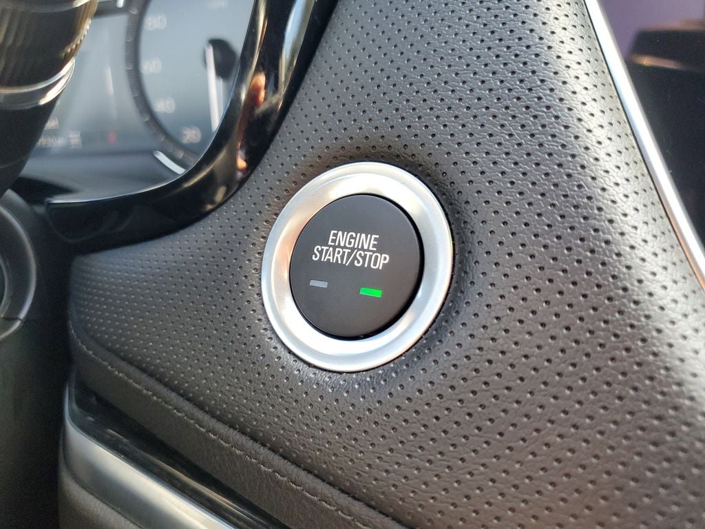 - Opens or closes when the system senses the key fob and the driver extends their foot under the left-hand side of the rear bumper over an image of the Cadillac Crest projected under the vehicle